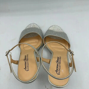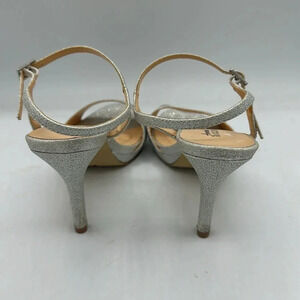 women's silver sparkly rhinestone American Glamour Badgley Mischka heels size 6 only wear is some yellowing of glue on one sole