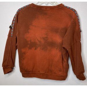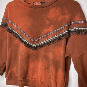 womens small tribal long sleeve sweatshirt Boho Native fringe bleached Orange