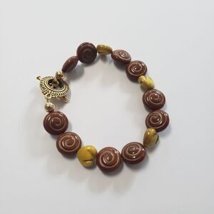 Beautiful wooden carved swirl bracelet with toggle clasp