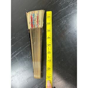 wooden hand painted- vintage fan with fabric end detailing- 17 inches extended