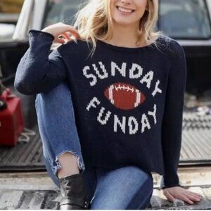 wooden ships Women’s Oversized, comfy, Sunday Funday Navy Blue Pullover Sweater Rolled Hem Cuffs Ribbed collar in EXCELLENT condition! No holes or stains. Size Tag: M/L