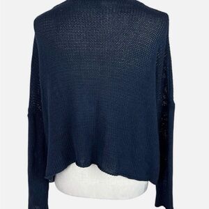 wooden ships Women’s Sunday Funday Navy Blue Pullover Sweater Rolled Hem Cuffs