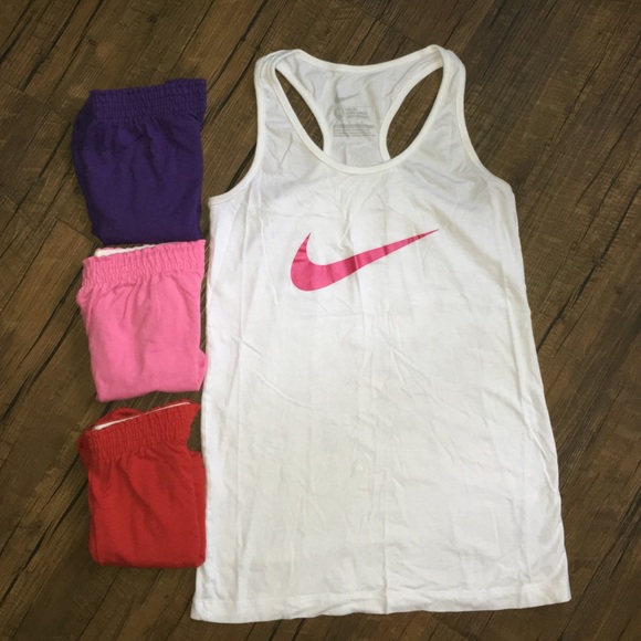 medium Nike tank with 3 pairs of Soffe shorts each sized small. Nike tank worn, shorts brand new WOT.