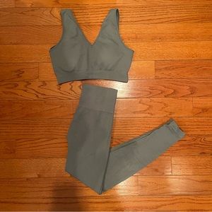 Amazon workout set, never worn besides to try on. The brand is called Jet joy. This set has 4.5/5 stars. Perfect neutral green color. Smoke free home!