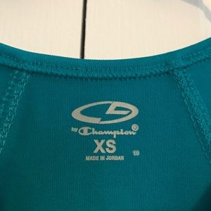 Worn maybe twice in total - 2-pack of turquoise and red V-neck spandex tanks by Champion. Great for running, yoga, the gym, etc. Wicking material and compression fit. Fits true to size, size XS. Save on shipping with 2-pack!