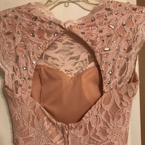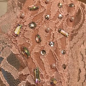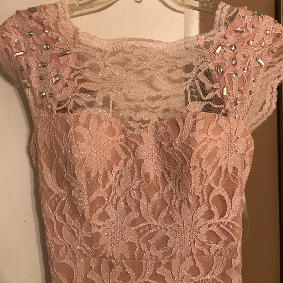 Beautiful dress on. It wore it for being a maid of honor. Can easily be any type of dressy dress. It clings to your skin perfect. It looks more like the color in the pic of me with it on, vs. the pictures I took- lighting was weird. But I love this dress, just don’t plan on wearing it again! I’m 5’5/5’6 and wore heels and was a good length was a little longer than I wanted it but I dealt with it! The chest part is beautiful and it does have a slit in the dress that makes the dress.