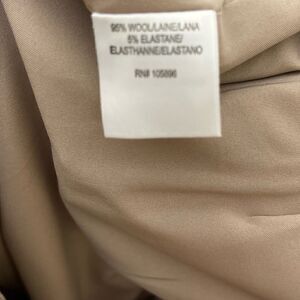 •Features: Tan straight leg pants. Two side zip pockets back welt pockets.