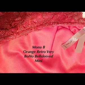 🆕 Nwots/Mona B. BOHO BEAUTY/Orange Metallic/Low U-Back/Mini,35"Long/Goes on over-head/Fully Lined w attached liner/27"Long Exaggerated BellSleeves/Sz Small:Laying Flat Across Bust:18"stretched/14"across waist/90% Polyester&10% Metallic/MADE IN USA/Care:Handwash Cold/U will shine in this Nwot(never worn)vintage design Mini! I'm moving inventory/open 2 fair offer, Pricing 2 move, so pls realize, Already priced LOW! ?'s pls ask B4 Purchase! Style:Wear as Mini or Tunic/I'm 5'6" hits mid thigh!