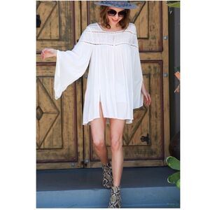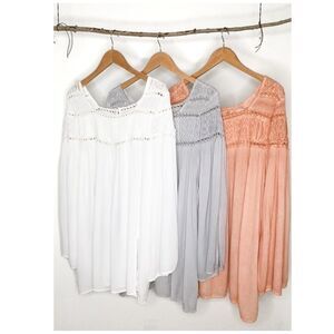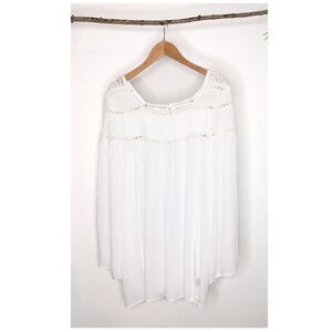 woven Gauze Tunic w/ Lace Contrast & Bell Sleeves