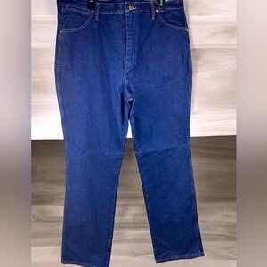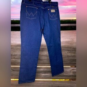 , wrangler, 42x32, 98% cotton, 2% spandex.
