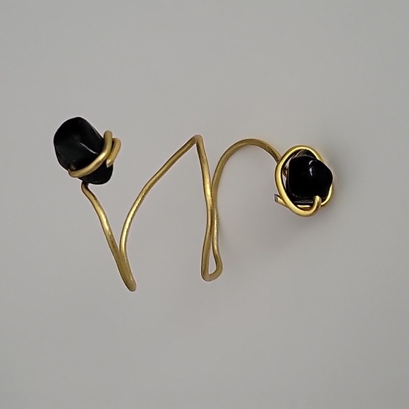 handmade adjustable wrap ring with gold wire and obsidian