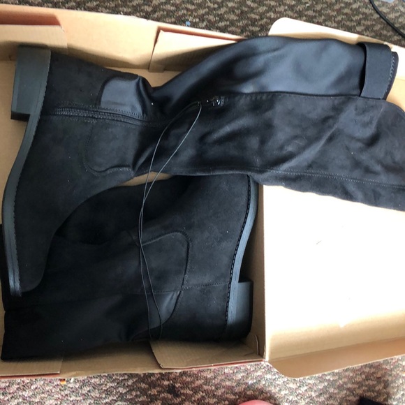 about knee-thigh high black boots with buckle as design, has a zipper. BRAND NEW. Price Negotiable.