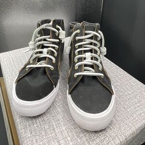 x Rebecca Minkoff Washed Canvas High Top Sneaker (Women) This fashion-forward high-top sneaker boasts a washed canvas upper featuring zipper trim as a nod to Rebecca Minkoff's signature handbags.