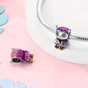 x1 925 Silver Plated Purple Enamel Smart Owl Flower Bead/Charm New