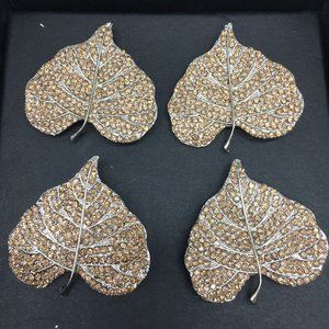 x12 Tahari Rhinestone Aspen Leaf Napkin Ring Set Elegant Fall Decor Thanksgiving