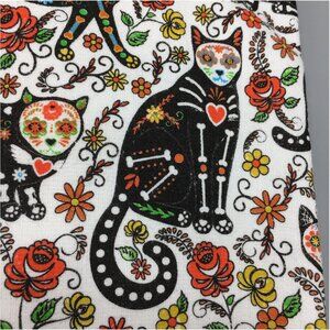 x2 Halloween Black Skeleton Sugar Skull Cat Kitchen Towel Set Roses Day of Dead
