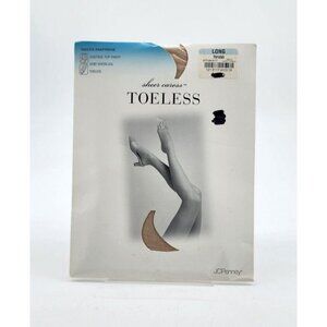 x2 JC Penney Sheer Caress Control Top Toeless Pantyhose Porcelain Size Long
