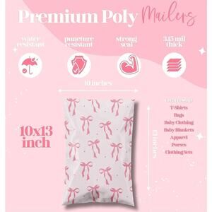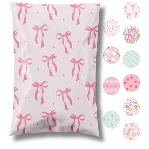 Pink Coquette Bow Poly Mailer 10 x 13 inch Designer Shipping Mailers Heavy Duty Waterproof Self Adhesive Shipping Bags for Large Mailing Envelopes Bulk Tear Resistant Packaging