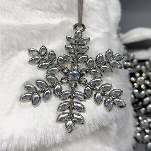 Model: Soft Faux Fur with Metal Rhinestone Jeweled Snowflake Tag/Ornament