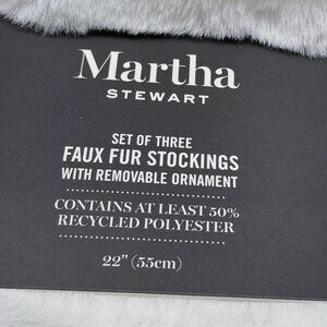 x3 Martha Stewart White Faux Fur Christmas Stocking Set Silver Jeweled Snowflake