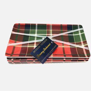 x6 TOMMY BAHAMA Red Tartan Plaid Melamine Appetizer Snack Plate Set Christmas