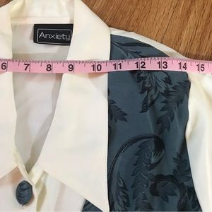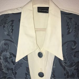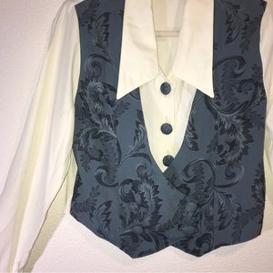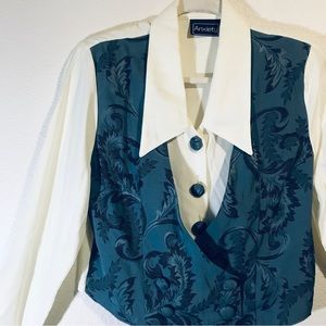 This is one of my favorite blouse-vest pieces. Pair it with a grey or cream pencil skirt or trousers/slacks. It’s sophisticated and elegant.