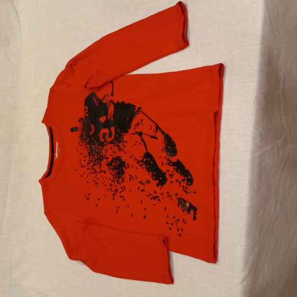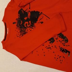 pullover long sleeves performance wear shirt, crew neck, art decal design, 100 % cotton, see details, see pics, NWT.