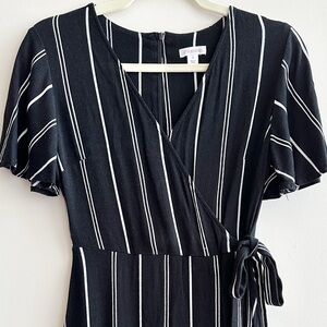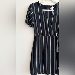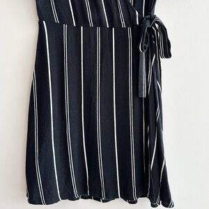 xhilaration Black and White Striped V-Neck Wrap Mini Dress, Size Small