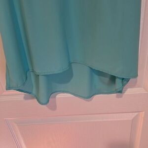 Excellent condition. Teal blue long sleeveless slightly sheer blouse. Size XL. Approx measurements across chest 22” length front 27.5” back 31”