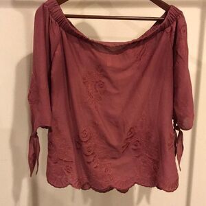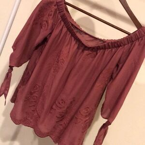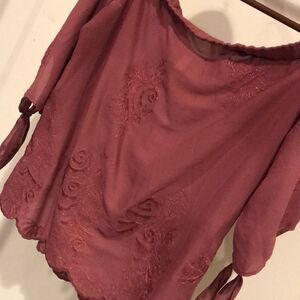 xhilartion Off Shoulder Maroon Metallic Blouse - Size Medium
