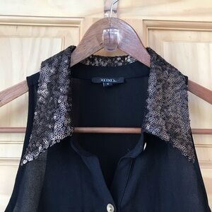 XOXO sequin collar sheer sleeveless tie front blouse size S. NEW!! Polyester.