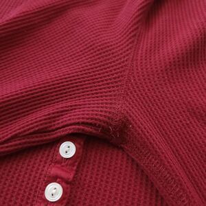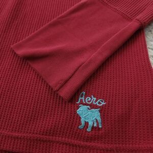 Aeropostale Y2K 2011 Long Henley Thermal Top Shirt Sz Medium. Red half button top with blue bulldog embroidered on the bottom. Has a small hole on the arm, little discoloration under the arms (pics). Flat measurements approximately