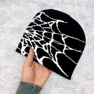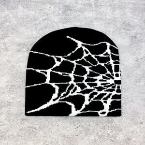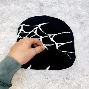 y2k 2000s black & white grunge gothic spiderweb beanie