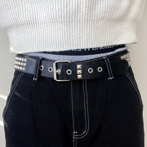 y2k 2000s classic pyramid studded black and silver goth emo belt