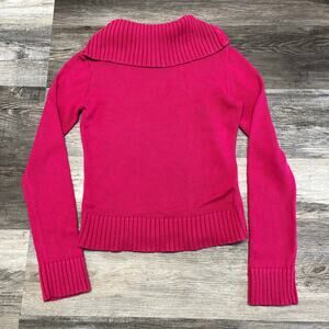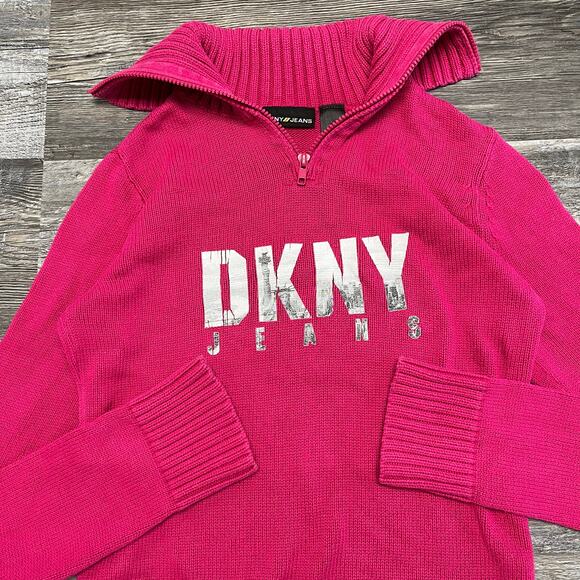 y2k 2000s pink dkny jeans nyc skyline spellout zip turtle neck sweater womens S