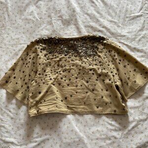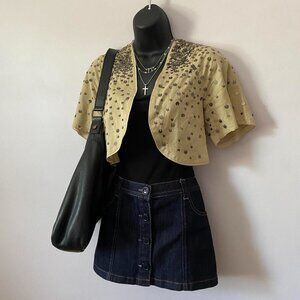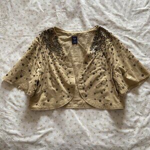 y2k 2000s vintage GAP tan cotton eclectic fairy shrug w metal sequins