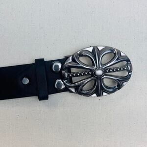 y2k 2000s vintage skeleton chrome cross studded goth emo black belt