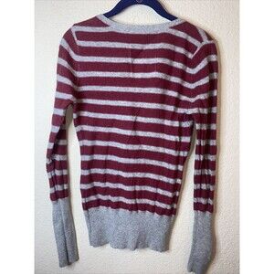 vintage y2k 90s from the closet . Beautiful striped red and gray fitted V-neck with half front button up long sleeve pullover  cardigan sweater.