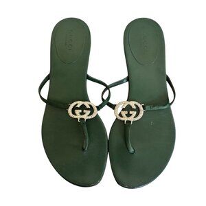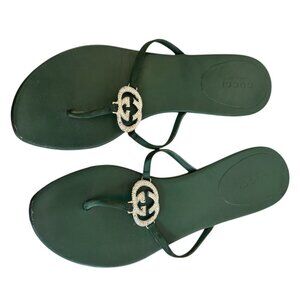 Beautiful vintage Authentic Gucci Emerald Green GG crystal rhinestone flip flops size 6.5-7