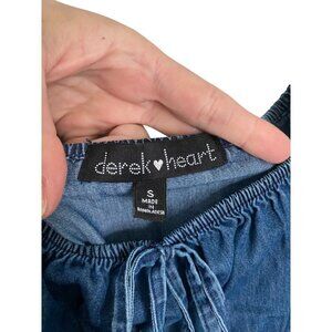 Derek Heart Babydoll Denim Dress, sleeveless, ties on the neckline, unlined, empire waist. Cute, trendy coquette dress for spring & summer. Vintage 90's Y2K style.