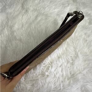 Preloved in great condition with normal wear on the exterior and interior. Please see all pictures. Zipper works perfectly. This is a pre-owned wristlet with signs of wear. All wear has been shown on photos. Ready to be used as a wristlet or mini purse.
