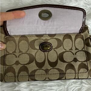 y2k COACH Vintage Soho Suede Brown Signature Canvas Wristlet