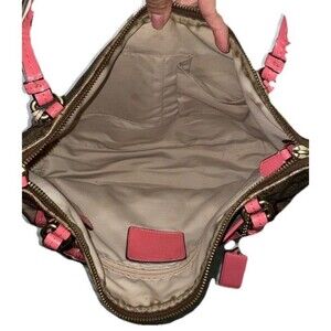 y2k Coach Signature Peyton East West Double Zip Carryall Gold Khaki Pink Purse