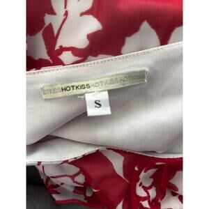 Super cute early 2000s Hot Kiss floral babydoll mini top in deep red & white hibiscus print. Features puff sleeves, a flattering square neckline, and body-hugging stretch fit. Perfect for layering over a mini skirt, jeans, or cargos for that authentic Y2K vibe.