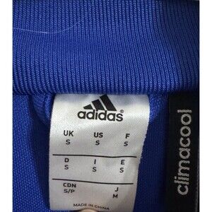 The Men's Adidas Climacool Blue Zip Soccer Track Jacket in size s is a versatile activewear piece perfect for soccer, cross training, and running. Made of polyester with a mid-length design and full zip closure, this athletic fit jacket is ideal for outdoor activities in the winter, fall, and spring. The jacket features the iconic adidas logo, making it a stylish and functional choice for any man looking to stay active in comfort and style. Made in China, this track jacket offers personalized sizing and a quality fabric type of jersey for optimal performance during various physical activities.