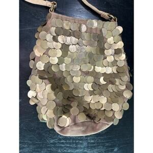 y2k- Metal Bronze Fish Scale Crossbody Bucket Bag- metallic some wear overall