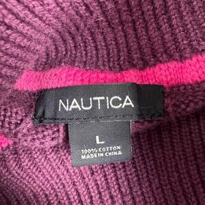 y2k NAUTICA Cable Knit Sweater Size L Purple Turtleneck 100% Cotton Short Sleeve