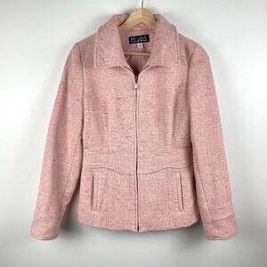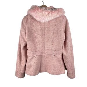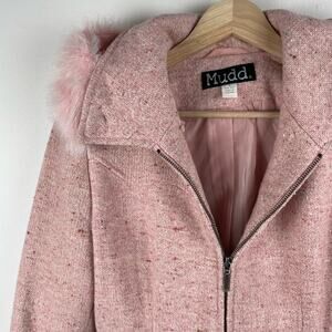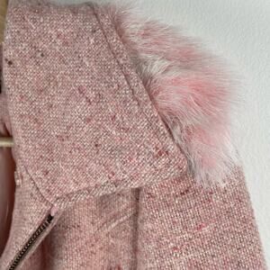 y2k Pink Tweed Wool Blend Coat Size S Faux Fur Trim Full Zip Jacket Bratz Doll