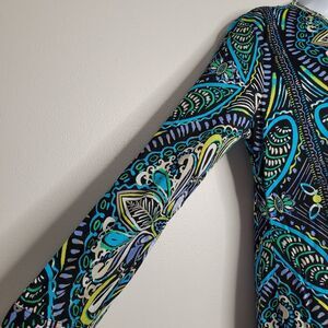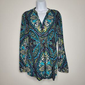 Style and Co: blue yellow green, abstract design, long sleeve, nylon