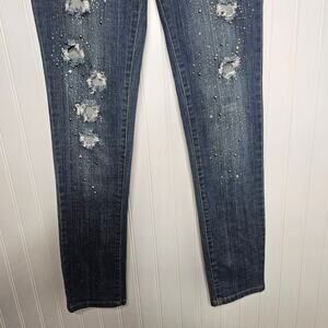 y2k TwentyOne Black Rue 21 Studded Low Rise Skinny Jeans Size 7/8 R Stretch Goth